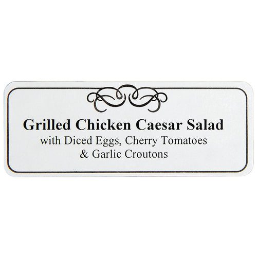 Laser Labels, scroll design, 2-1/2" x 1"H, rectangular, 30-up, decorated by using Avery ™ 5260 user-friendly template, FDA-approved permanent adhesive, paper, black imprinted, white background (priced per box, 65 sheets with 30 labels each = 1950 labels per box)