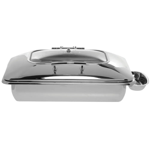 Induction Chafer, full-size, 9-1/2 qt., 23" x 18" x 8-1/4"H, rectangular, with food pan, water pan, spoon holder, & hydraulic self-closing cover with glass window, water return system, food pan lifting pin, stainless steel, mirror finish