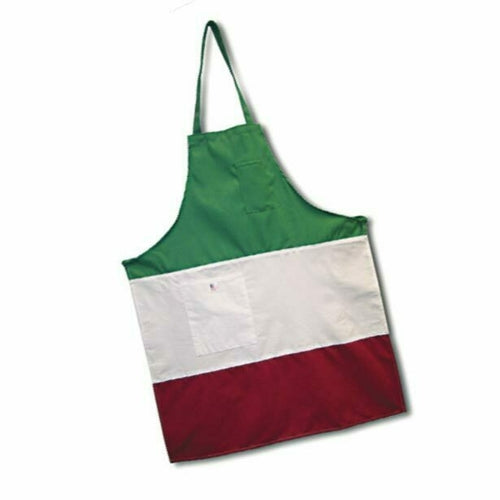 Italian Specialty Apron, 32"L x 28"W, (1) hip/pad pocket, (1) pen pocket, poly/cotton, green/white/red, Made in USA