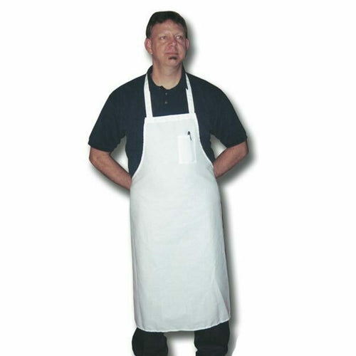 Bib Apron, 34"L x 30"W, (1) pencil pocket, poly/cotton, white, Made in USA