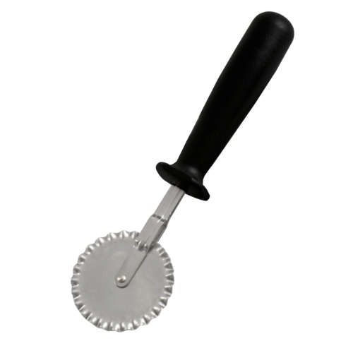 Pastry Cutter, 2" dia. wheel, fluted, plastic black handle, stainless steel