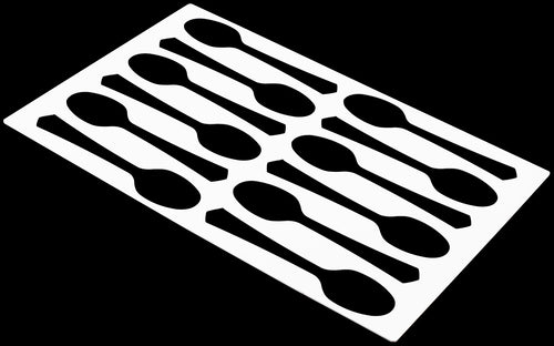 Martellato Culinary Templates, 11-7/8"L x 7-7/8"W overall size, small spoons design size: 5-1/8"L x 1-1/4"W, plastic, white