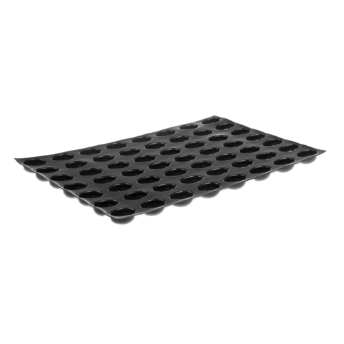 Demarle Flexipan® Mold, 23"L x 15"W, (56) mini half egg, 2-1/4" dia. x 1/2"H with 1/2 oz. capacity each, temperature range -40° to 536°F, non-stick, flexible, silicone, black, NSF