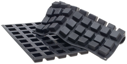 Demarle Flexipat® Mold, 26"L x 18"W, (96) cube, 1-1/4" square, 3/4"H with 1-1/4" square x 3/4"H with 9/16 oz. capacity each, temperature range -40°F to 536°F, non-stick, flexible, silicone, black, NSF