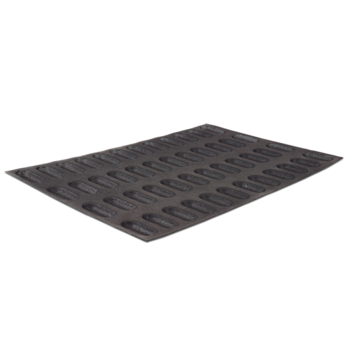 Demarle Silform Mold, 25"L x 17-1/2"W, (48) mini eclair, 2-3/4"W x 3/8"H with 5 oz. capacity each, fits on standard US sheet pan, freezer to oven safe (up to 550°F), non-stick, mesh, silicone, black, NSF