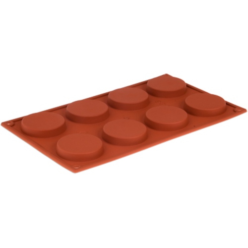Pavoni Mold, 12"L x 7"W, (8) florentine, 2-1/3" dia. x 1/2"H with 1-1/5 oz. capacity each, temperature range -10° to +500°F, non-stick, dishwasher safe, flexible, silicone, orange