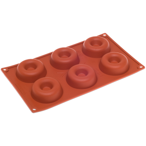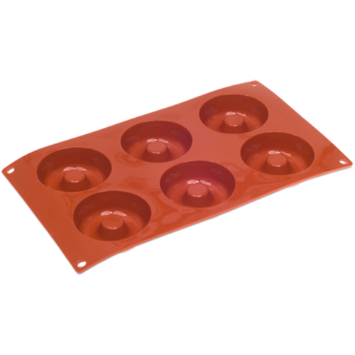 Pavoni Mold, 12"L x 7"W, (6) savarin, 2-1/2" dia. x 7/8"H with 1-1/2 oz. capacity each, temperature range -10° to +500°F, non-stick, dishwasher safe, flexible, silicone, orange