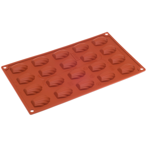 Pavoni Mold, 12"L x 7"W, (20) madeleine, 1-2/3"L x 1/2"W with 3/16 oz. capacity each, temperature range -10° to +500°F, non-stick, dishwasher safe, flexible, silicone, orange