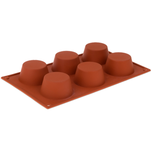 Pavoni Mold, 12"L x 7"W, (6) muffin, 2-3/4" dia. x 1-1/3"H with 3 oz. capacity each, temperature range -10° to +500°F, non-stick, dishwasher safe, flexible, silicone, orange
