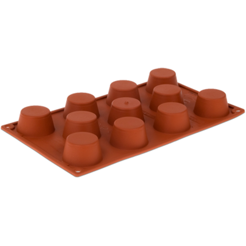 Pavoni Mold, 12"L x 7"W, (11) muffin, 2" dia. x 1"H with 1-2/5 oz. capacity each, temperature range -10° to +500°F, non-stick, dishwasher safe, flexible, silicone, orange