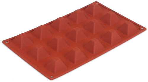 Pavoni Mold, 12"L x 7"W, (15) pyramid, 1-1/3"L x 7/8"H with 1/3 oz. capacity each, temperature range -10° to +500°F, non-stick, dishwasher safe, flexible, silicone, orange