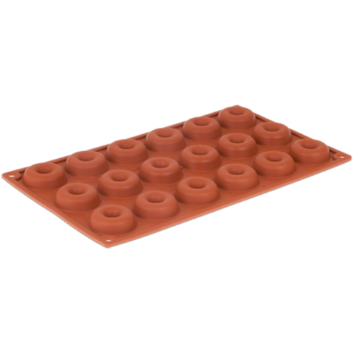 Pavoni Mold, 12"L x 7"W, (18) mini savarin, 1-5/8" dia. x 1/2"H with 1/5 oz. capacity each, temperature range -10° to +500°F, non-stick, dishwasher safe, flexible, silicone, orange