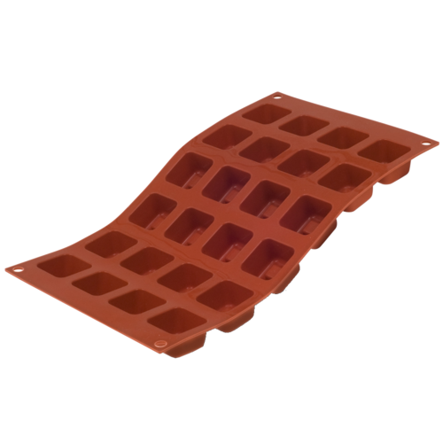 Pavoni Mold, 12"L x 7"W, (15) small square savarin, 1-7/8" square x 1-3/16"H with 1/2 oz. capacity each, temperature range -10° to +500°F, non-stick, dishwasher safe, flexible, silicone, orange