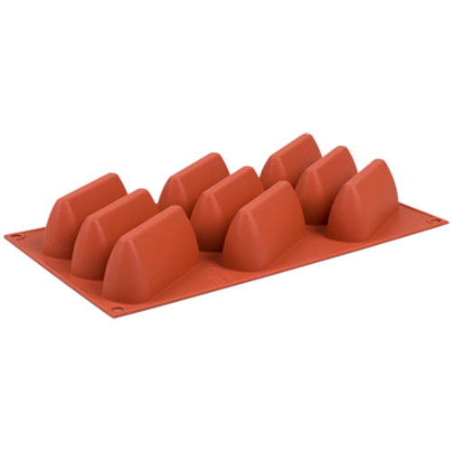 Pavoni Mold, 12"L x 7"W, (9) wedge, 3-3/16"L x 1-1/5"W x 1-1/5"H with 1-1/2 oz. capacity each, temperature range -10° to +500°F, non-stick, dishwasher safe, flexible, silicone, orange