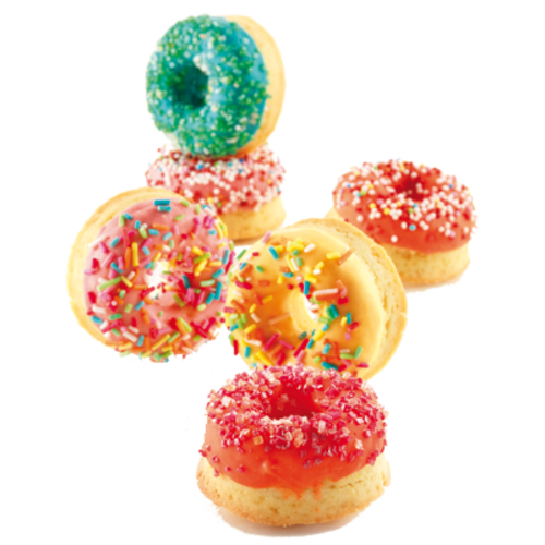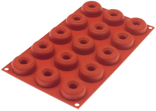 Silikomart Mold, 12"L x 7"W, (15) small donut, 1-3/4" dia. x 3/4"H with 4/5 oz. capacity each, temperature range -10° to +500°F, non-stick, dishwasher safe, flexible, silicone, orange