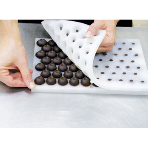 Geometric Mold, 11-1/2"L x 7-1/2"W, 2-piece, (67) sphere, 1" dia. each, seamless, temperature range -40° F to 536° F, non-stick, silicone, white