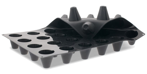 Pavoni Pavoflex Mold, 23-1/2"L x 15-3/4"W, (24) ridged cone, 2-1/2" dia. x 2-3/4"H with 4-1/4 oz. capacity each, temperature range -40 to 536°F, non-stick, flexible, silicone, black