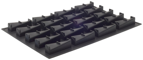 Pavoni Pavoflex Mold, 23-1/2"L x 15-3/4"W, (20) twisted rectangle, 4-3/4"L x 1-1/4"W x 1-1/2"H with 3-7/8 oz. capacity each, temperature range -40 to 536°F, non-stick, flexible, silicone, black