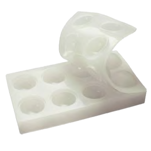 Pavoni Mold, 12"L x 7"W, 2-piece, (8) 2" dia. spheres, seamless, temperature range -40° F to +536° F, non-stick, flexible, silicone, white