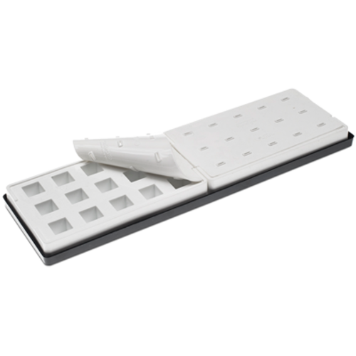 Silikomart Pop Mold Tray, 15-1/2"L x 4-1/2"W, (30) mini cubes, 4/5" cube each, temperature range -76°F to +446°F, includes (50) sticks, silicone and plastic
