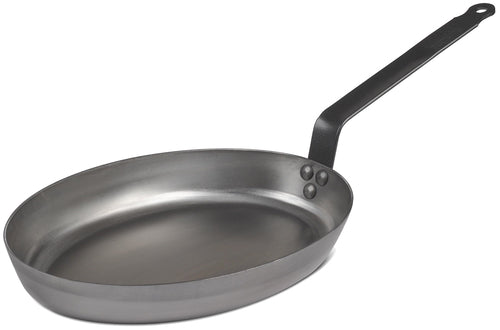 De Buyer Fry Pan, 12" x 9", oval, riveted offset handle, carbon steel