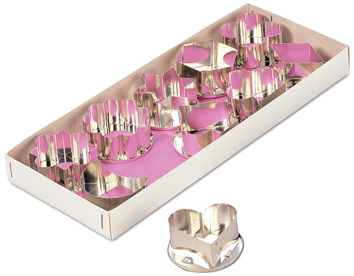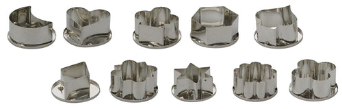 Canape Cutters, 2" dia. x 1"H, various shapes, Made in Germany, tinned steel (set of 10 pieces)