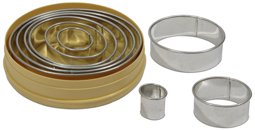 Pastry Cutter Set, 1-1/4"H, cut size range 1-3/25"L to 6"L, oval, stainless steel, metal box (set of 9 pieces)