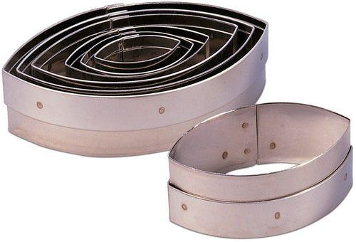 Matfer Cutter Set, 1-1/2"H, size range 1-16/25 L to 5-1/4 L, plain, barquette, Made in France, stainless steel (set of 7 pieces)