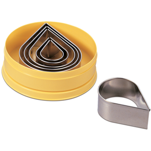 Pastry Cutter Set, 1-1/2"H, cut size range 1-3/4"L to 4-3/4"L, teardrop shaped, stainless steel, yellow plastic box (6 pieces per set)