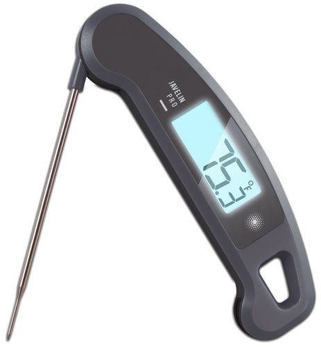 Lavatools Javelin Thermometer, temperature range -40°F to 482°F (-40°C to 250°C), folding, stainless steel probe, antimicrobial exterior, sleep mode, intelligent stabilization, touch sensor, anti-fog display, power saver, splash resistant, magnetic back, plastic, sesame, NSF