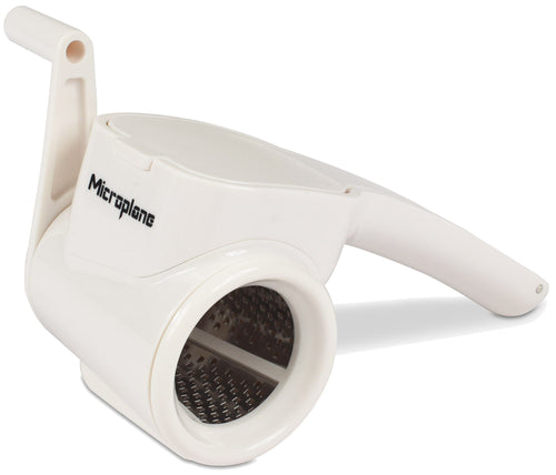 Microplane® Rotary Grater, 8-3/8"L x 3-1/2"W, fine blade, dishwasher safe, stainless steel, plastic body, white