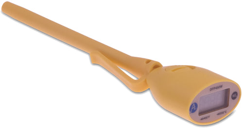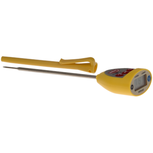 Taylor Pocket Thermometer, 7"L, fine tip, adjustable preset alarm, waterproof, temperature range from -40 to 450°F (-40 to 232 °C), stainless steel, plastic, yellow, NSF