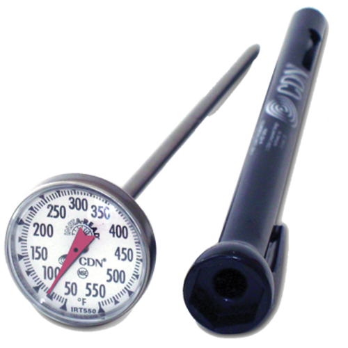 CDN Pocket Thermometer, 1" dia. dial, 5"L, adjustable reading from 50 to 550°F, stainless steel housing, polycarbonate holder, black, NSF