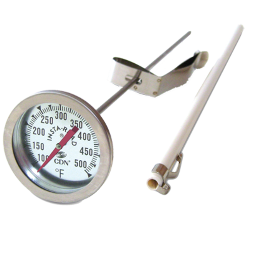 CDN Fry Thermometer, dial with stem, 100 to 500°F temperature range, with adjustable clip, stainless steel