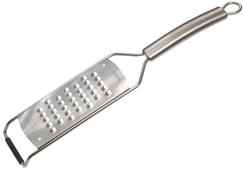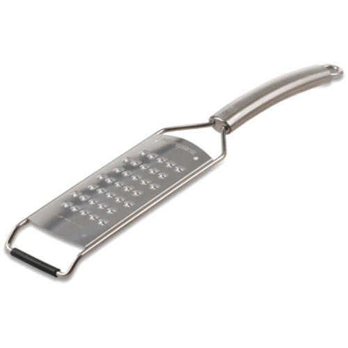 Microplane® Pro Series Grater, 13"L x 3"W x 1"H, extra coarse blade, for hard onions, soft cheese, cabbage, and potatoes, includes (1) protective cover, dishwasher safe (top rack), curved handles, non-slip rubber feet, 18/8 stainless steel