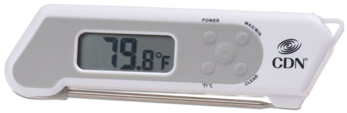 CDN Folding Thermocouple, 6-1/2"L x 2"W, -58 to +572°F (-50 to +300°C), water resistant, food-safe ABS plastic with BioCote®, white, NSF