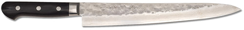 Kikuichi Slicer (Sujihiki), 9-1/2", forged, smooth edge, high carbon stainless steel blade, hammered finished, wood handle, Made in Japan