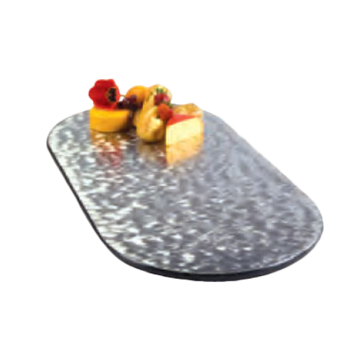 Display Tray, 36"W x 18"D, oval, rimless, stainless steel, black vinyl edges, rubber feet (by Lakeside), Made in USA