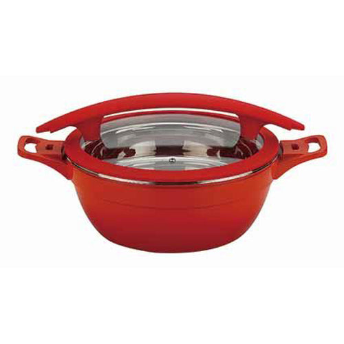 Table Top Technologies Contemporary Vessel, 4-4/5 qt., 17-3/4"W x 12-7/8"D x 8-3/4"H, glass lid with black handle, rubber gasket, includes (1) stainless steel insert, induction ready, cast aluminum, red finish