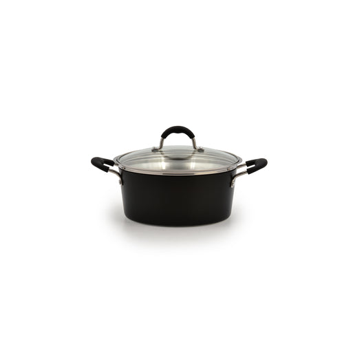 Table Top Technologies Pot, 4 qt., 9-7/16" dia. x 4-1/4"H, conical, with lid, coated handles, induction ready, heavy cladding, cast aluminum, black finish