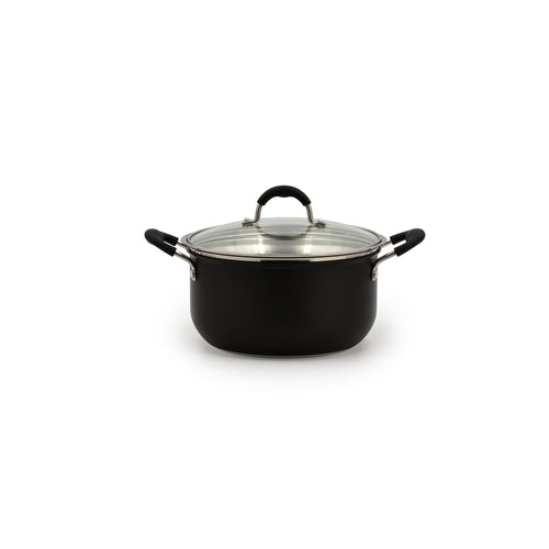 Table Top Technologies Pot, 4 qt., 9-7/16" dia. x 5-1/8"H, round, with lid, coated handles, induction ready, heavy cladding, cast aluminum, black finish