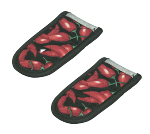 Hot Handle Holder Set, 8-1/16" x 3-1/4" x 1-1/16", heat protection up to 350°F, cloth, red chili pepper, Made in USA (2 each per set) (fits most Lodge cookware)