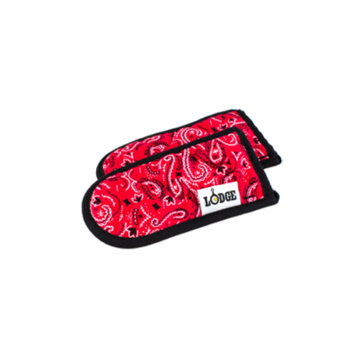Hot Handle Holder Set, 7-3/4"L, heat protection up to 350°F, cloth, red bandana, Made in USA (2 each per set) (fits most Lodge cookware)