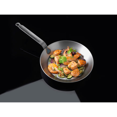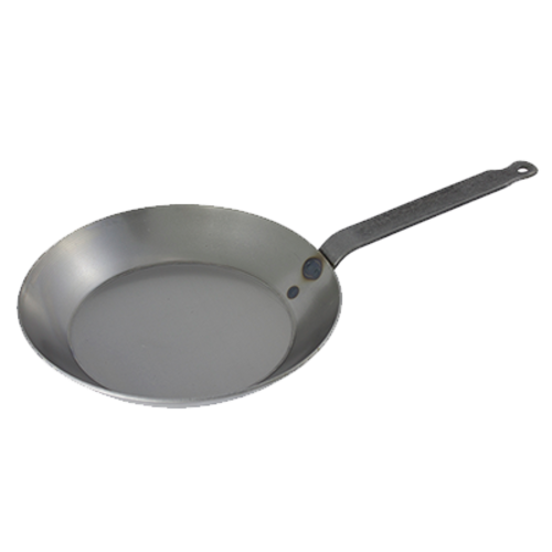 Frying Pan, 8-5/8" dia. x 1-1/2"H, riveted strong steel strip handle, black steel, suitable for gas, electric, ceramic, halogen, and induction hobs