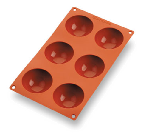 Gastroflex® Half Sphere Mold, 6 per sheet, 2-3/4" dia. x 1-3/8"H half-spheres, sheet size 11-3/16”L x 6-7/8”W, flexible, freezer to oven, temp resistance from -58°F to 482°F, dishwasher safe, food grade silicone, made in France