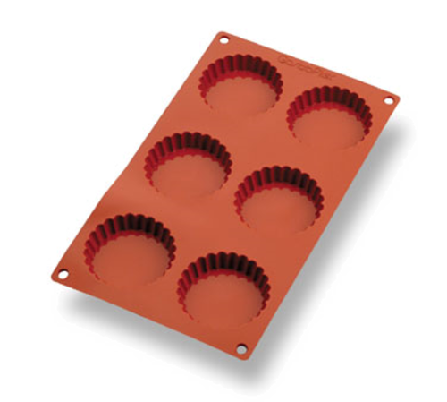Gastroflex® Fluted Tart Mold, 6 per sheet, 3-1/8"L x 3/4"H fluted tarts, sheet size 11-3/16”L x 6-7/8”W, flexible, freezer to oven, temp resistance from -58°F to 482°F, dishwasher safe, food grade silicone, made in France