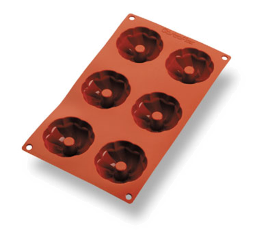 Gastroflex® Mini Kugelhopf Mold, 6 per sheet, 2-7/8" dia. x 1-1/2"H mini Kugelhopfs, sheet size 11-3/16”L x 6-7/8”W, flexible, freezer to oven, temp resistance from -58°F to 482°F, dishwasher safe, food grade silicone, made in France