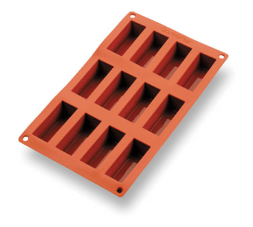 Gastroflex® Mini Cake Mold, 12 per sheet, 2-3/4"L x 1-1/4"W x 1-1/4"H mini cakes, sheet size 11-3/16”L x 6-7/8”W, flexible, freezer to oven, temp resistance from -58°F to 482°F, dishwasher safe, food grade silicone, made in France