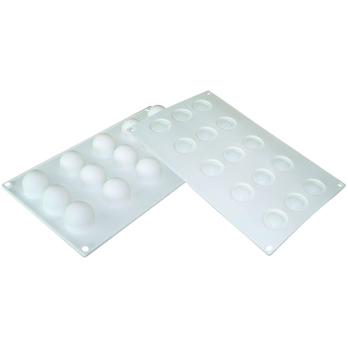 Silikomart® 3D Mold, "Mini Truffles", 11-3/4"L x 7"W, makes (15) 1-1/10" dia. x 1-1/4"H spheres, flexible, non-stick, silicone, white, Made in Italy