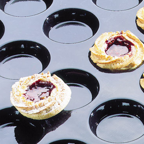 Flexipan® Florentines Mold, 40 per sheet, 1 oz. cap., 2" dia. x 6/13"H sheet size: 23-3/4" x 15-3/4", non-stick, withstands temperatures from -40°F to 580° F, flexible, reusable 2,000 to 3,000 times, food grade silicone, NSF